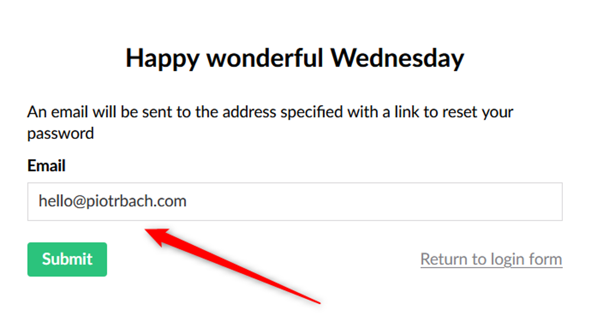 Type in the email address associated with your Umbraco user account and click the submit button.